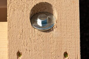 Alle Holzverbindungen sind mit durchgehenden Schloss-Schrauben oder Gewindestangen, teilweise auch mit Schlüsselschrauben ausgeführt. Alle Schraubenenden sind mit großen Holzbauschrauben versehen, damit die jeweiligen Verbindungen fest angezogen werden können.